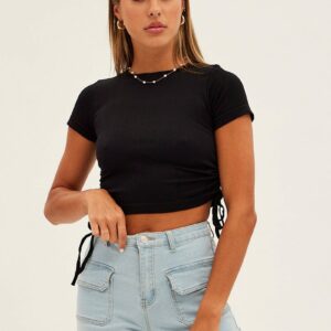 Fabric: StretchGender: WomenAge: AdultBody Length: CropSeason: SummerStyle: CasualFit: Skinny FitMaterial: PolyesterLabel: Ally FashionMaterial Group: PolyesterSub-Category: BSAStyle Code:BS0329A-84J
